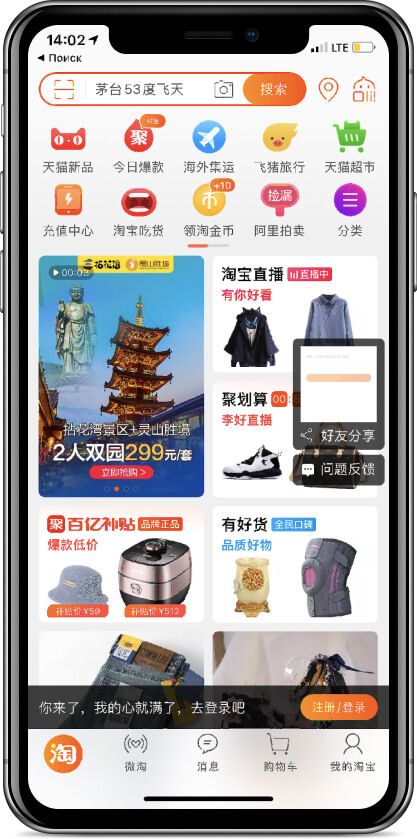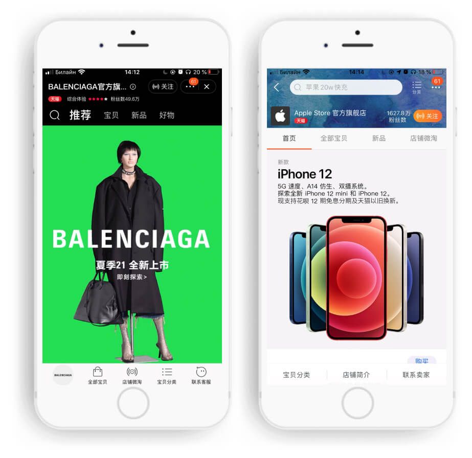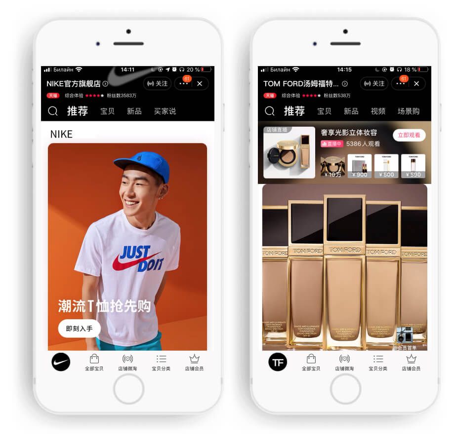 О Tmall говорят, что это приложение, которое больше всех похоже на имитацию шопинга в реальном торговом центре. Компании могут открывать «флагманские магазины» и настраивать дизайн полностью под себя, привлекая еще больше покупателей.