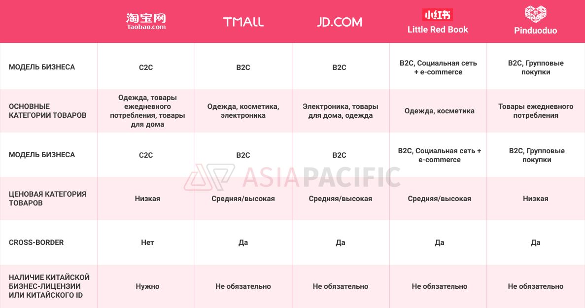 Специально для этого, мы подготовили небольшую сводную таблицу с основными характеристиками китайских площадок электронной торговли.