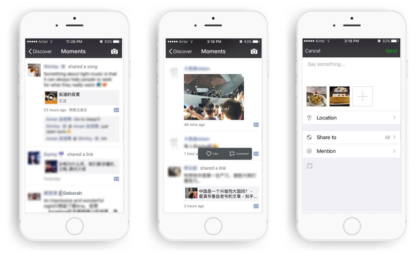 Аккаунт WeChat дает пользователям доступ к возможностям переписываться друг с другом, объединяться в группы (WeChat позволяет создать общую группу до 500 человек), публиковаться в новостной ленте, выкладывать сторис и многое другое. Сегодня использование WeChat вышло далеко за пределы Китай, а доступ к соцсети открыт пользователям практически по всему миру.