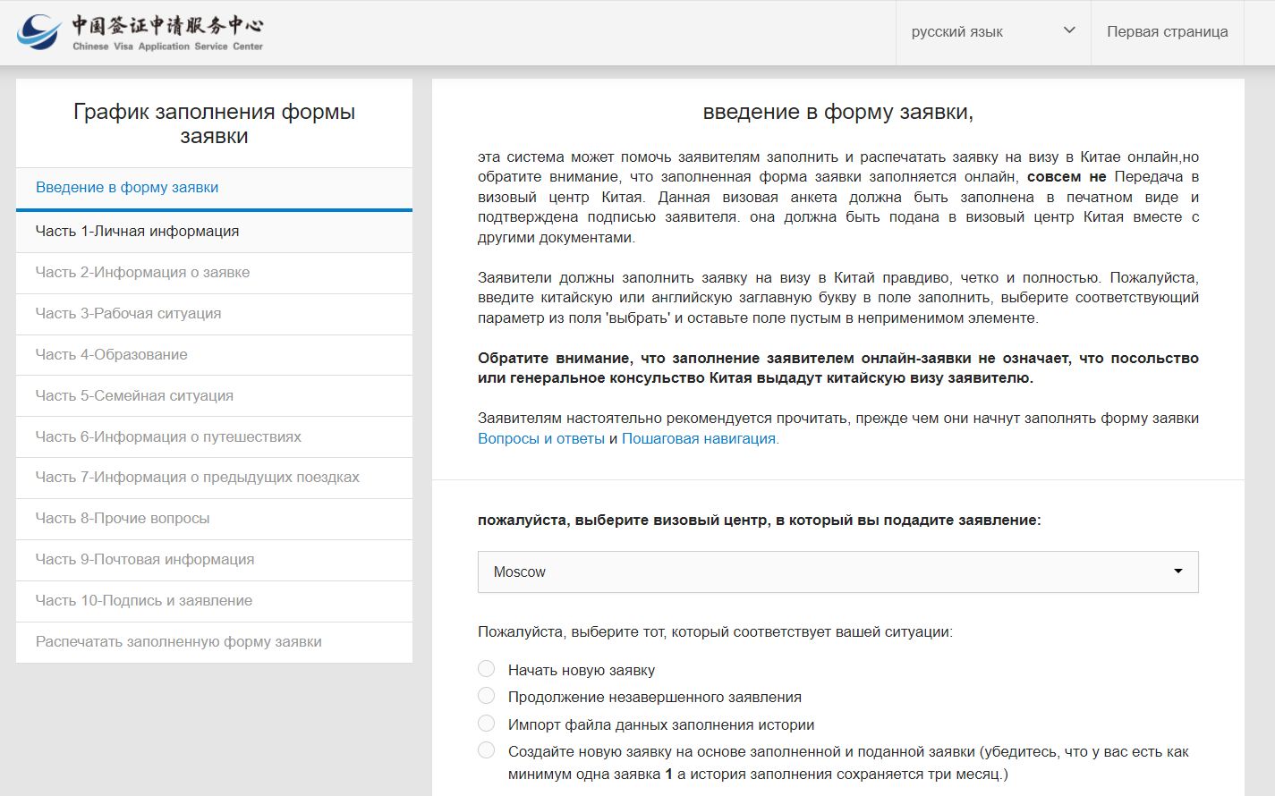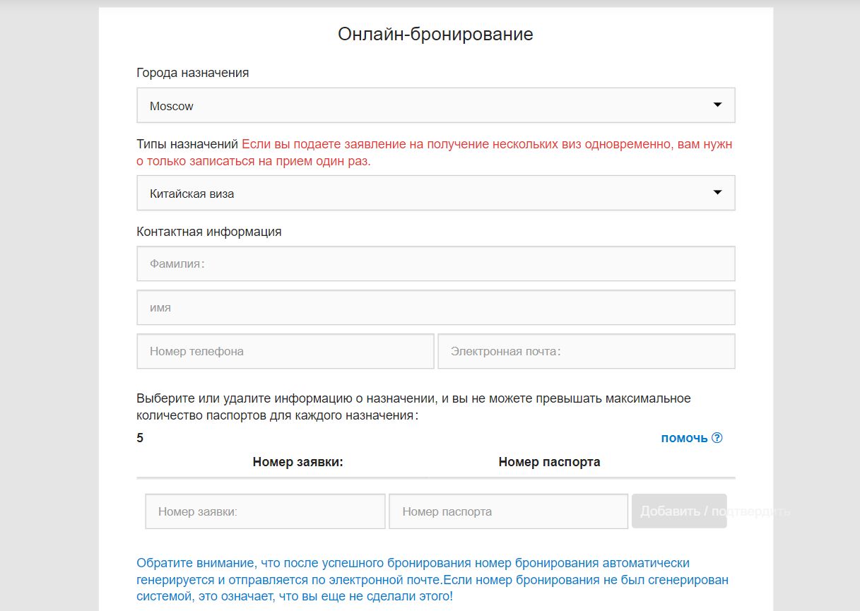Перейдя на следующий сайт вы можете заполнить анкету на оформление визы онлайн. В анкете от вас потребуется указать полную и достоверную информацию, после чего вам нужно будет записаться на прием для подачи документов на визу в Китай.