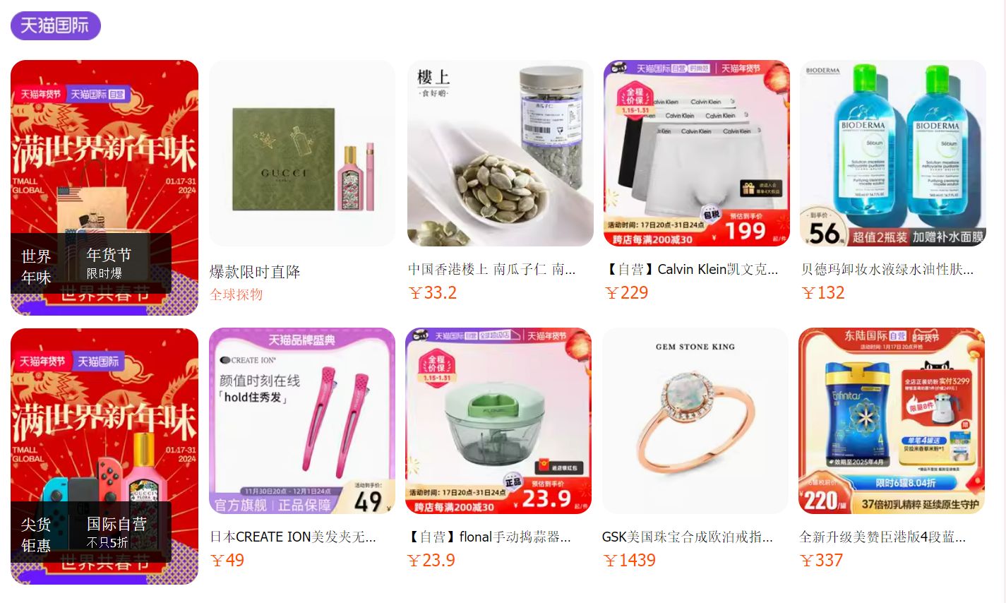 Если же проскроллить страницу Tmall, то ниже вы увидите раздел с предложениями по импортным товарам от Tmall.hk.