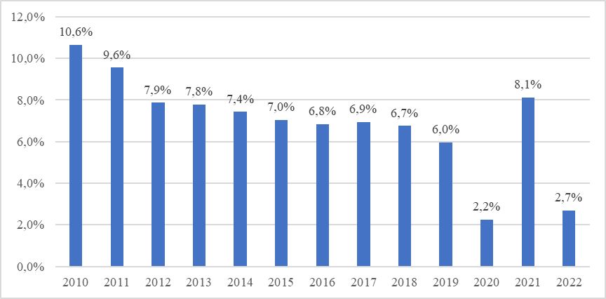 Темпы роста ВВП Китая в 2010-2022 гг.