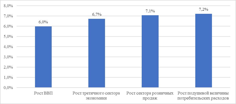 В 2021 г. на фоне постепенного восстановления мировой экономики от пандемии темпы роста восстановились до 8,1%. Однако в 2022 г. руководство страны продолжило курс на поддержку политики “нулевой терпимости”, что привело к серьезному сдерживанию деловой активности. По оценкам Всемирного банка, к концу 2022 г. прирост ВВП страны составил лишь 2,7%.