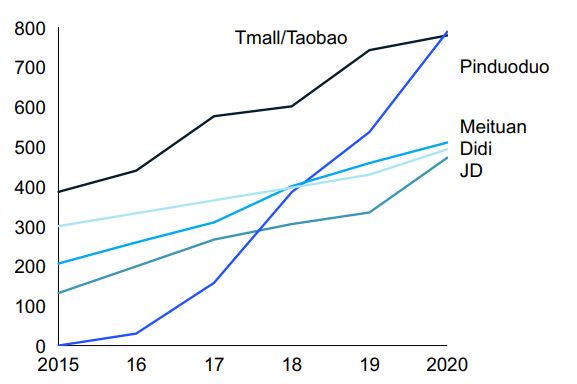 Динамика активных покупателей на крупных китайских e-commerce площадках