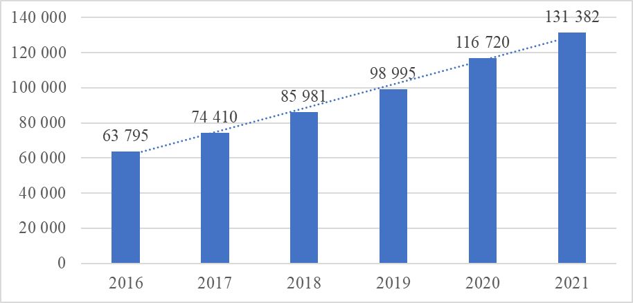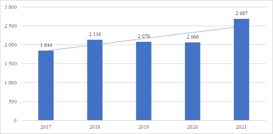 Динамика импорта в 2017–2021 гг. (млрд долл.)