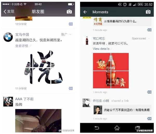 WeChat предлагает размещать рекламу в моментах с возможностью таргетироваться на пользователей по полу, возрасту, местоположению, профессии, предпочтениям, потребительскому поведению и др.