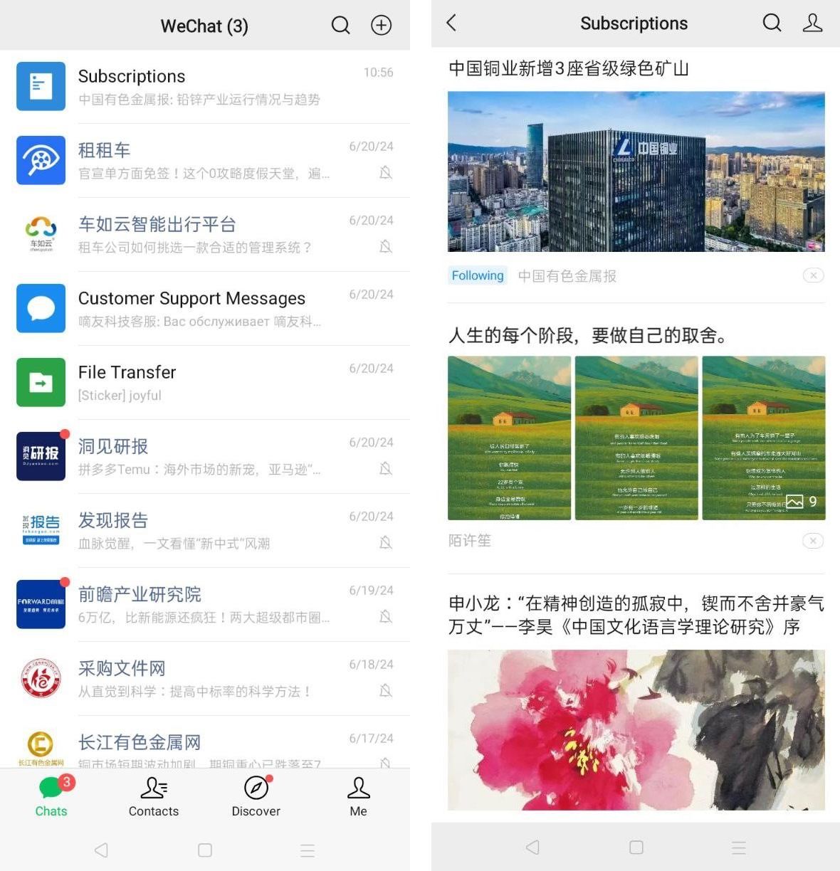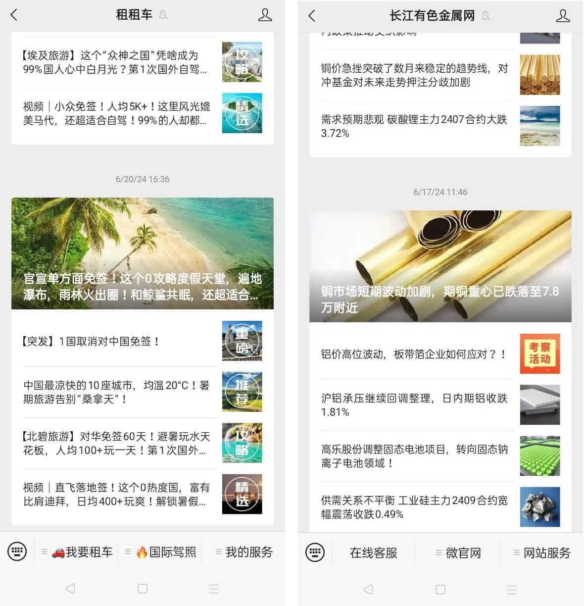 Также не стоит забывать о возможности настройки CRM-системы для более эффективной работы с потенциальными клиентами. Во вкладке с аккаунтом пользователь может выбрать необходимые опции, нажав на одну из кнопок. Среди примеров на скринах выше - пользователь может заказать машину (我要租车) прямо в приложении (слева). Во втором случае, получив рассылку о трендах металлургического рынка, пользователь может уточнить некоторые вопросы в службе поддержки (在线客服), которую можно удобно автоматизировать в WeChat.