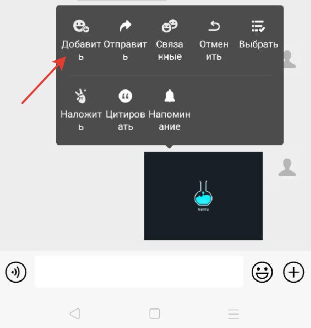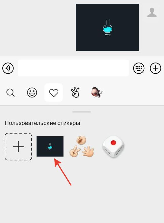 Другой вариант – добавить GIF-стикер из отправленных сообщений в чате. Для этого в сообщении в чате нужно нажать на стикер, выбрать “отправить” с иконкой смайлика, после чего стикер будет доступен в разделе “пользовательские стикеры”.