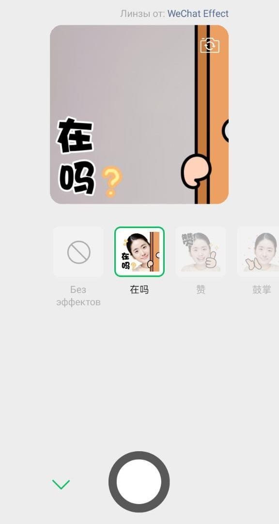 Среди других способов находится одна крайне интересная опция Вичат – это создание стикеров через селфи. Для этого необходимо нажать на иконку с пальцами в виде буквы V, после чего нажать на иконку “сделать фото”.