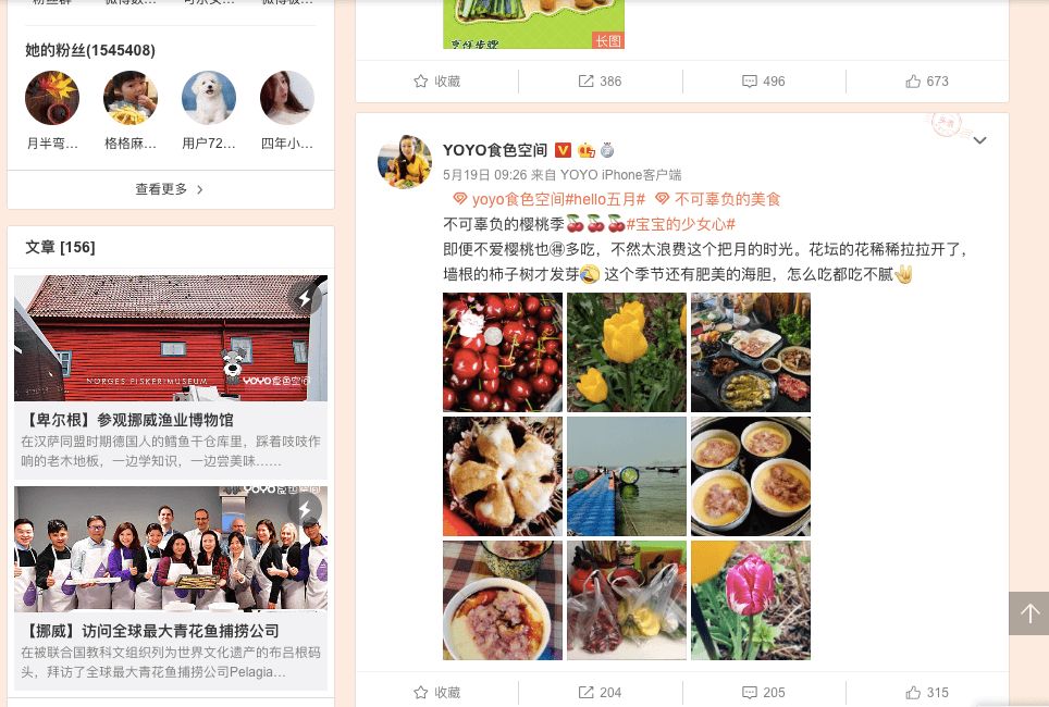Конечно же, в Китае, где к еде особое, трепетное отношение, популярны и фуд-блогеры. Страничка с наибольшим количеством подписчиков принадлежит YOYO, чей блог сочетает в себе трэвэл- и фуд-тематику. Она путешествует по миру, пробует различные блюда, а потом рассказывает о своих впечатлениях подписчикам. Следом за ней, согласно рейтингу Weibo, идут Цзюньчжи и Вэньъи — фуд-блогеры в более привычном нам понимании. Они постят различные рецепты, рассказывают, чем накормить детей и друзей, нагрянувших в гости, всё это с красивыми фотографиями, смотреть которые на голодный желудок не рекомендуется.