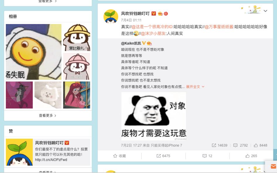 Есть в Китае и юмористические блоги, чьи странички носят развлекательный характер, например, “Колокольчик на ветру звенит динь-динь” (风吹铃铛响叮叮), количество подписчиков его канала перевалило за два миллиона. Если Западные блогеры, чей контент носит развлекательный, юмористический характер, преимущественно создают его сами — снимают смешные ролики, делают нелепые фотографии, то китайские блогеры часто “производят” мемы — придумывают смешные подписи к картинкам, делятся своими находками с подписчиками. Смешные ролики, как и другой видео-контент, сейчас в основном можно найти в Douyin или Kwai — это приложения для создания коротких роликов с большим количеством спецэффектов. Именно в них китайские блогеры на камеру танцуют, красятся, дурачатся, в общем, делают всё, чтобы подписчики не заскучали.