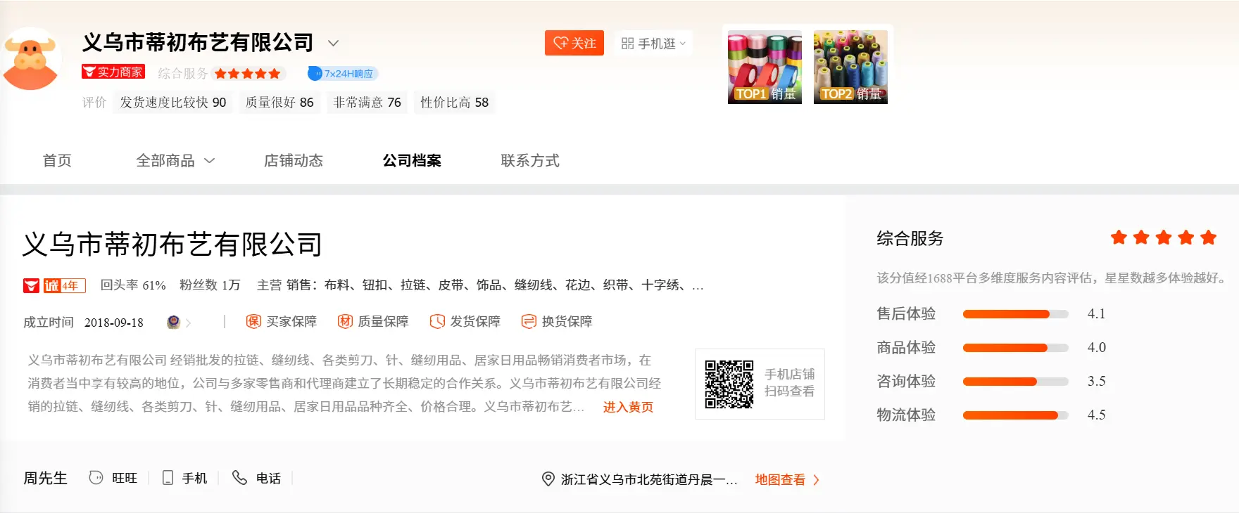 Информацию о поставщике и его товарах можно найти по открытым данным на маркетплейсе 1688. Например, в группе потенциально надежных поставщиков с проверенными товарами – компании, у которых есть иконка "быка" (实力商家). В разделе с магазином поставщика можно посмотреть оценки по разным критерием, процент повторных покупок, сертификаты и производственные мощности, а также опции по кастомизации производства под запросы клиента.
