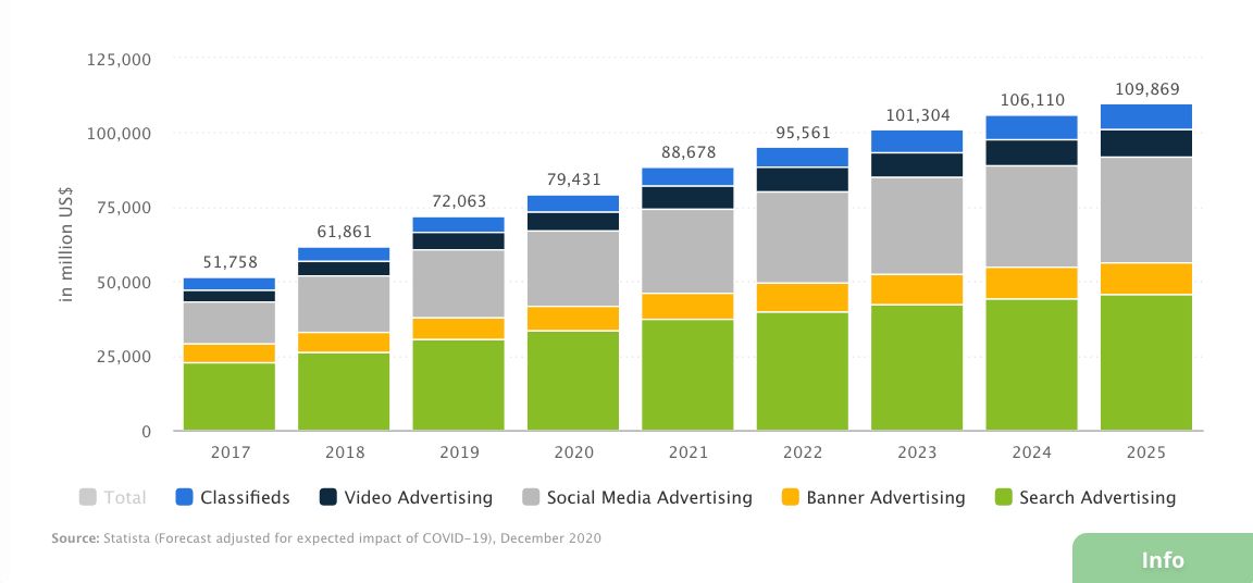 Реклама через традиционные каналы в Китае постепенно устаревает. Нельзя сказать, что такая форма рекламы пришла в полный упадок, однако она демонстрирует снижение эффективности при характерной для нее более высокой стоимости. Еще в 2016 году общие затраты на рекламу на телевидении составили всего 24.2% от всех расходов на медийную рекламу, или 18.92 миллиарда долларов США. Это в два раза меньше, чем общая доля затрат на онлайн рекламу в Китае. В то же время, доходы от рекламы на телевидении в Китае находятся в нисходящем тренде. По оценкам Statista, к концу 2023 года выручка от рекламы на телевидении в Китае сократится до 46,6 млрд юаней.