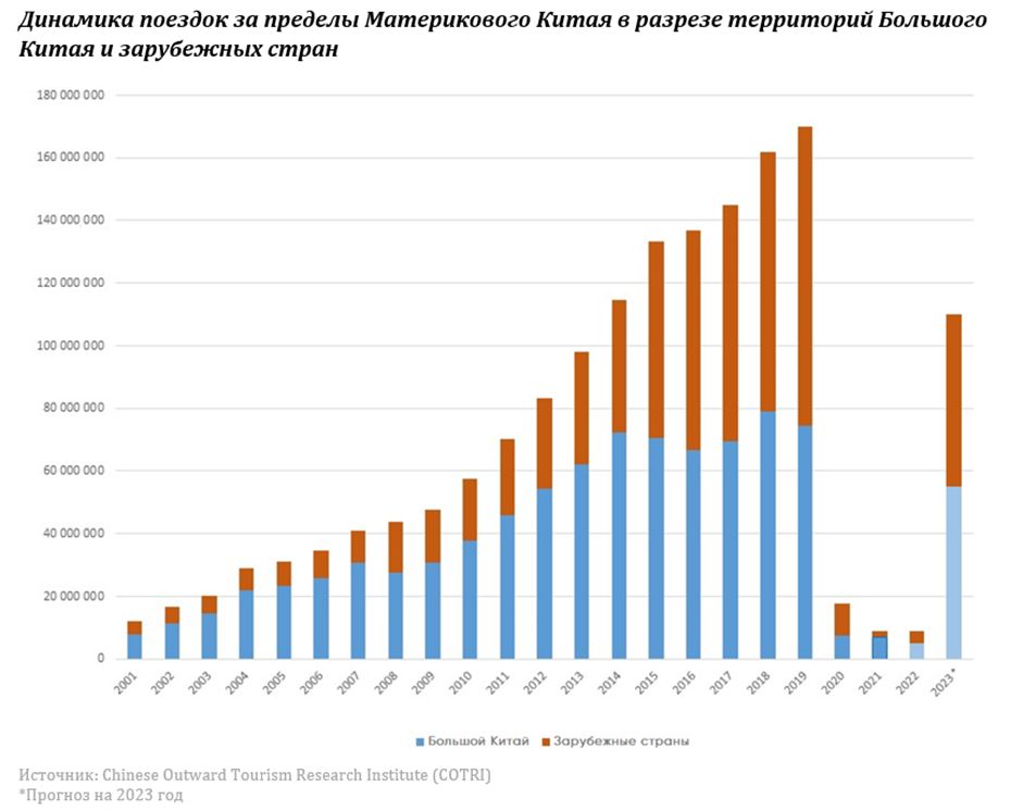 Несомненно, пандемия COVID-19 оказала негативное влияние на китайский турпоток в Россию, однако на сегодняшний день Китай отказался от жесткой антиковидной политики, что дало толчок к восстановлению китайского выездного туризма после открытия границ для туристов. По данным Росстата, уже в I кв. 2023 г. в России побывало 37 тыс. китайских туристов против всего лишь 3 тыс. туристов, приехавших из Китая в Россию в I кв. 2022 г. (рост более чем в 12 раз!), поэтому китайский туризм в России находится в стадии активного восстановления.